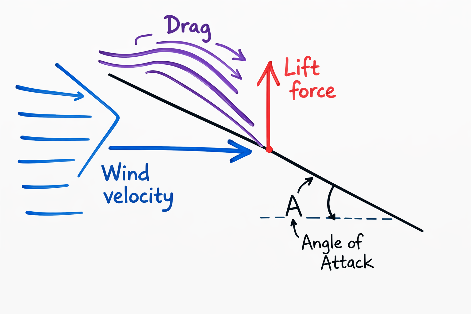 - Wind velocity: The more headwind (speed) you have, the more air and air molecules will hit your wing. This pushes the wing upward where the wind will then be directed to the ground and changes the velocity. Changing the direction and velocity of this wind has a reaction which is lift force.